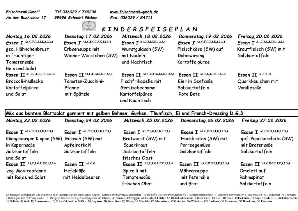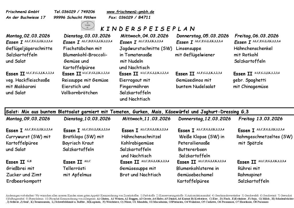 Kinderspeiseplan
